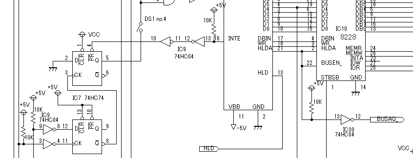 回路図は間違っていませんが、基板の配線をするときに、IC25(HC32)のpin10をIC23(HC32)のpin12につながなければならないのに、うっかりしてpin11につないでしまいました。