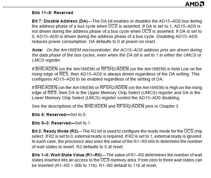ひょっとしてAM188はデータバスが8ビットですけれど本来の8086(AM186)はデータバスが16ビットのはず。