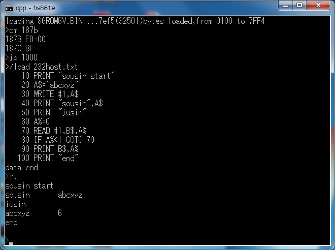 これまたたっぷり丸2日かかって、やっとのことで、8086版BASICにREAD #1とWRITE #1を組み込むことができました。