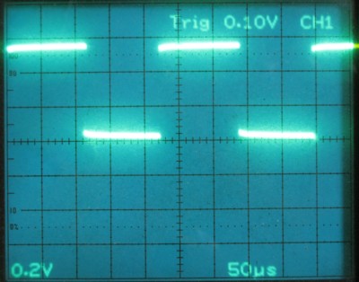 命令の実行クロック数を計算することでその時間幅を得ていますが、そういえば実際に出力パルスを測定して確認してはいませんでした。