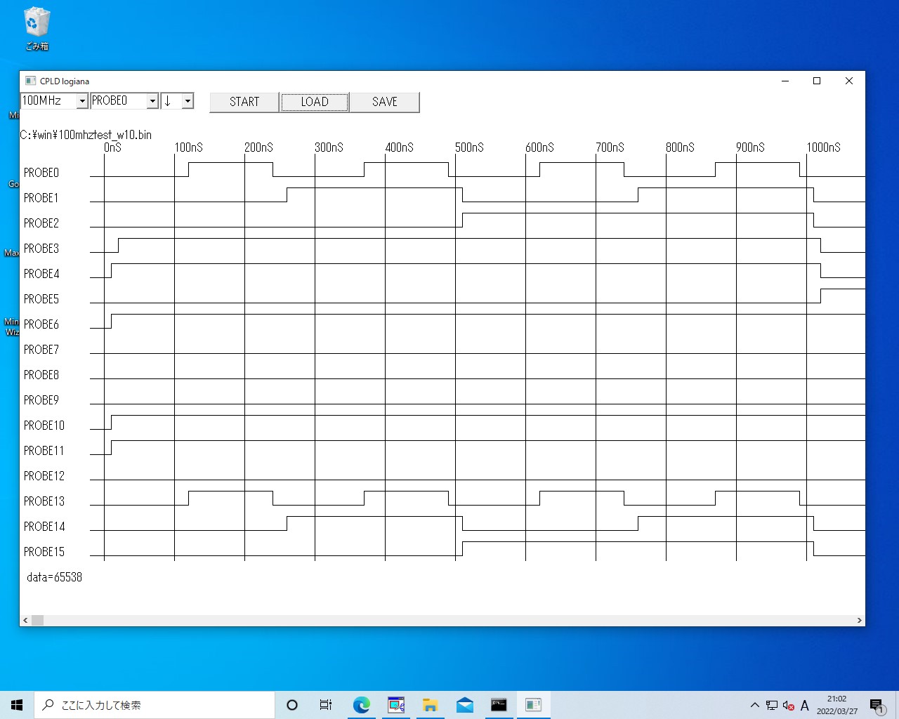 データを100mhztest_w10.binというファイル名でSAVEしました。