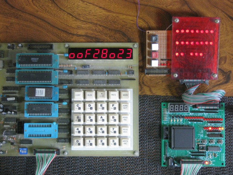 接続ケーブルが画面の外になってしまいましたが、ND80Z3.5の26pin増設用I/OコネクタとCPLDトレーニングボードの26pinバスコネクタをフラットケーブルで接続しています。