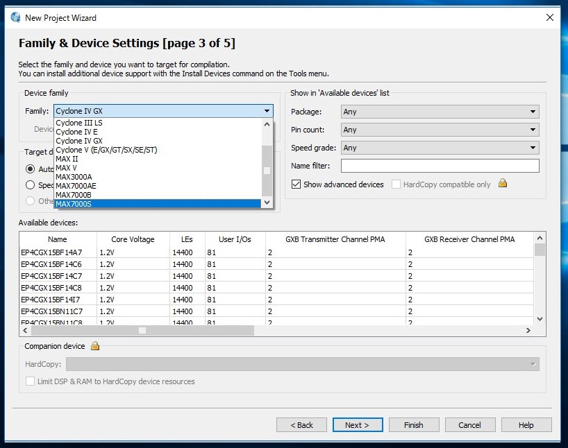 その中のEPM7128SLC84−15を選択します。