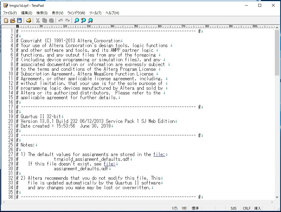 TeraPadでtrngsmpl1.qsfが開きます。