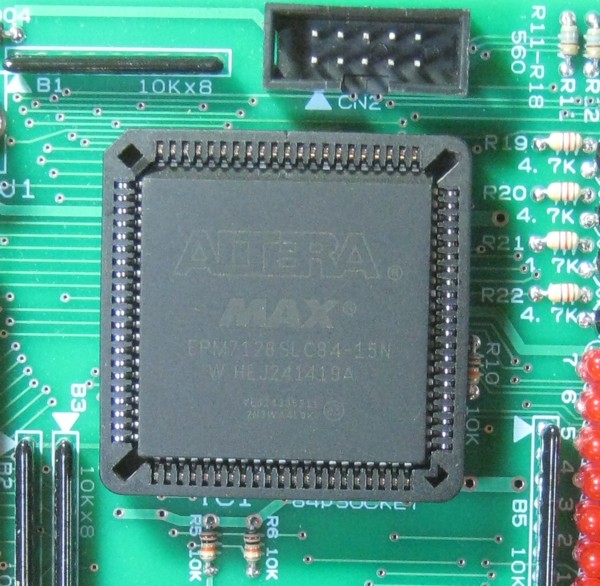EPM7128SLC84の左上隅も斜めにカットしてあるのがわかると思います。