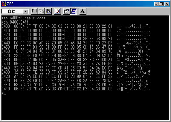前回はZB3BASICシステムプログラムを0400Hからロードしたあとで、0406Hから実行しました。