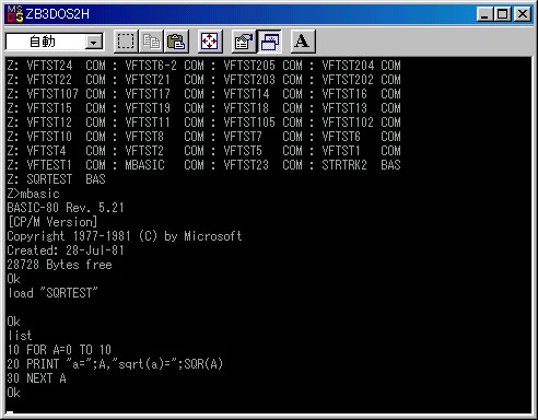 前回まさかZドライブでMBASICが動くところまで出来るとは思っておりませんでしたが、それが動いてさらにMBASICでプログラムの作成や実行まで出来てしまったということになりますと。