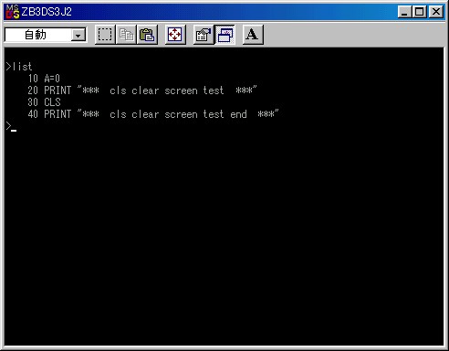 やっとのことでまともに動くようになったZB3BASICのCLS命令の実行例です。