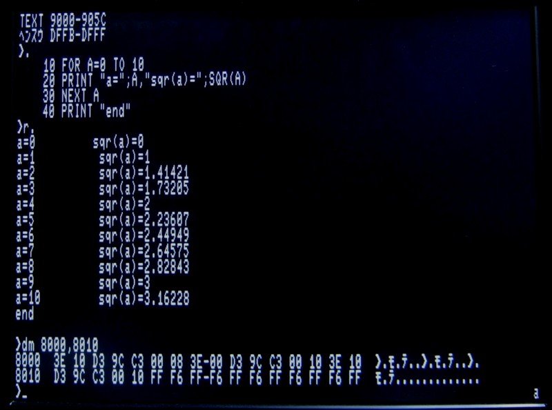 ここではテスト版として8000から切換プログラムを書いて実行しましたが、最終的にはコマンドを用意するつもりです。