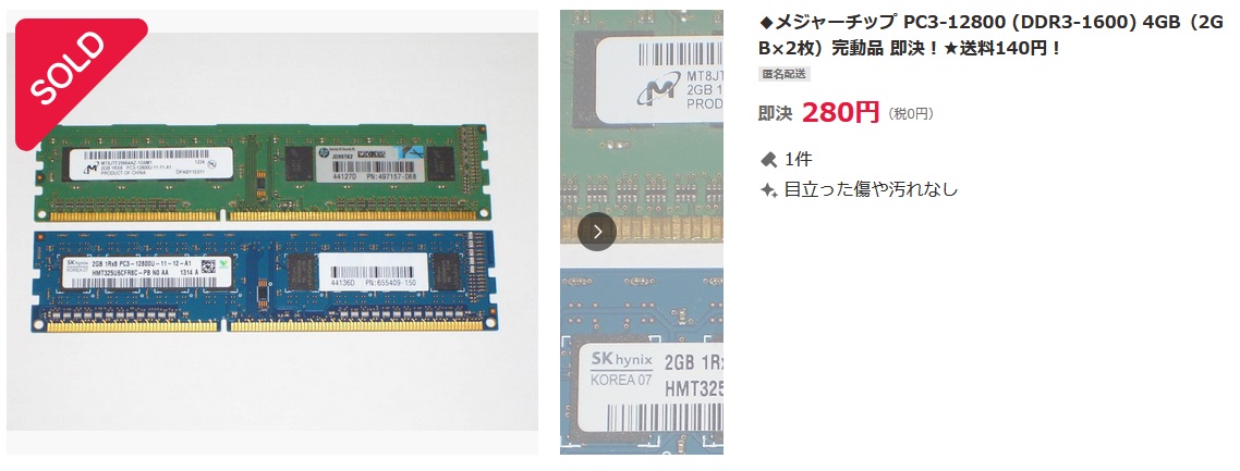 DDR3−1600(PC3−12800) 4GB(2GBx2) こちらもなんと送料込み420円です。