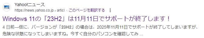 23H2は11月11日にサポートが終了されます。