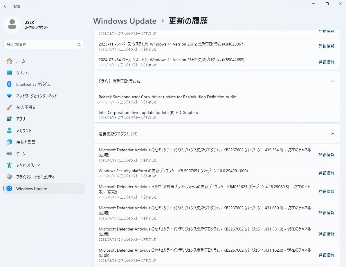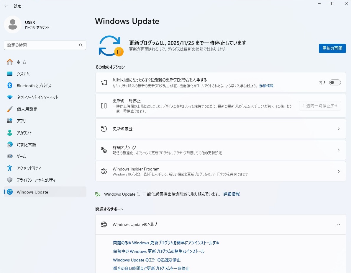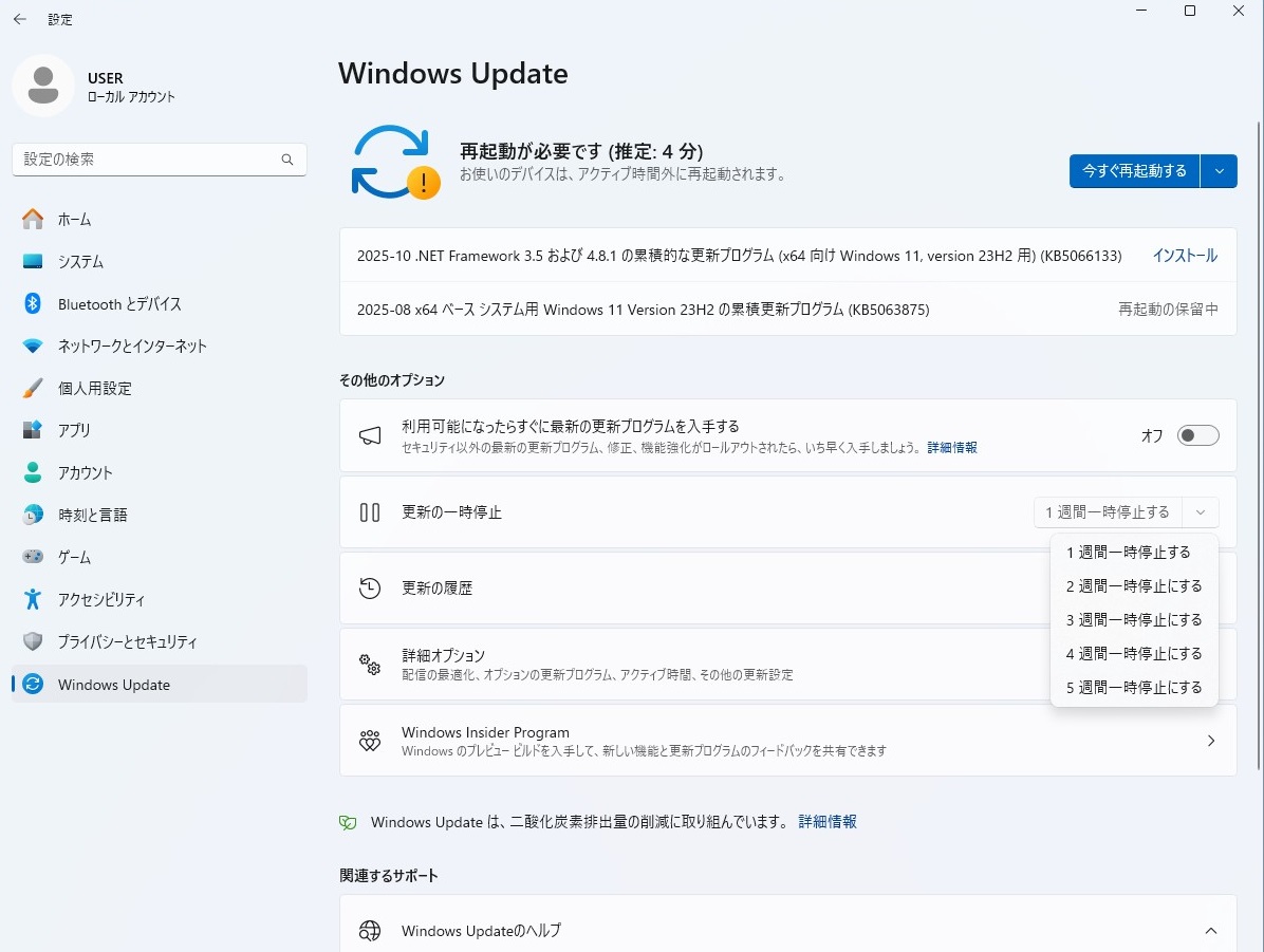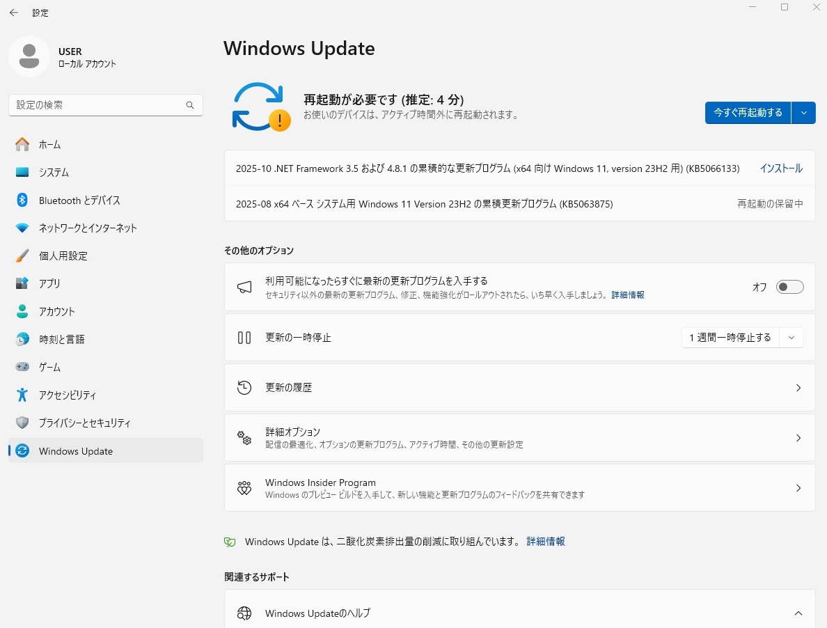 もうあと少しでサポートされなくなるという23H2ではありますが今のところときどき自動更新が始まることから見て更新プログラムが自動的に実行される設定になっているようです。