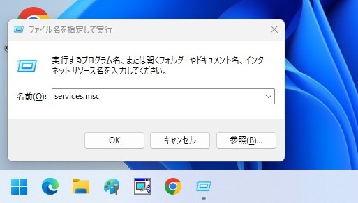 「Windows]キー+[R]キーを押して「ファイル名を指定して実行」を表示します。