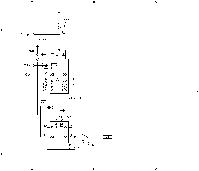 Qa〜Qdが74HC161からの出力信号で、Qeは「期待される」74HC74からの出力信号です。
