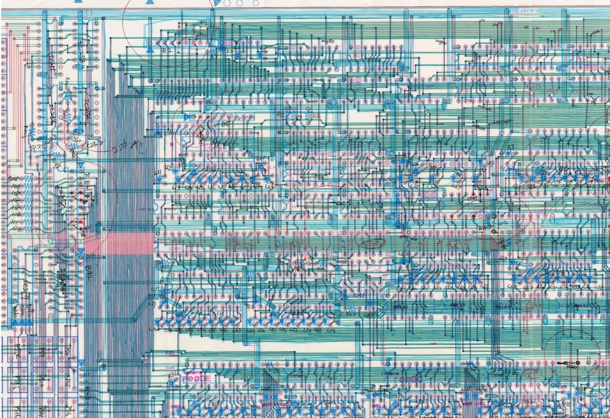 というわけで、参考までに、配線ミスやパーツシンボルの間違いがみつかったあたりをスキャナで取り込んでみました。