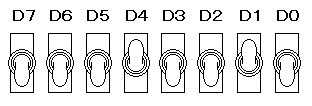 図のように、トグルスイッチのD7〜D0のうちのD4とD1を上に、その他を下にします。