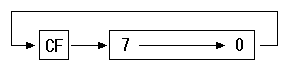 今回の8ビットCPU(4ビットCPUも同じ)ではCF(キャリーフラグ)を含めて9ビット(4ビットCPUでは5ビット)を右にローテイトする命令をRRというニーモニックで定義します。