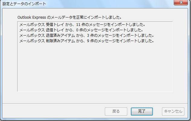 実はWindows Liveメールからインポートできるのはアカウントの設定だけで、そのほかのアドレス帳やメールボックスはインポートできません。