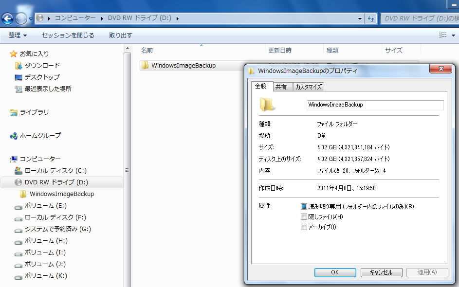 Windows7のシステムイメージのバックアップは、DVD−Rに保存することもできます。
