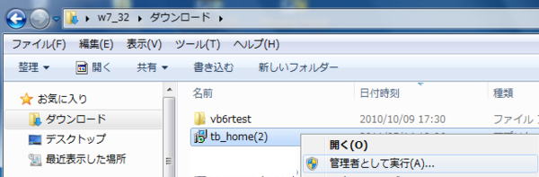 「ダウンロード」フォルダを開いてtb_home(2).exeを実行します。