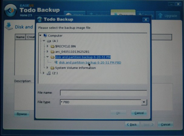 disk and partition backup 6−20−51 PM が前回作成されたバックアップイメージを保存しているフォルダです。