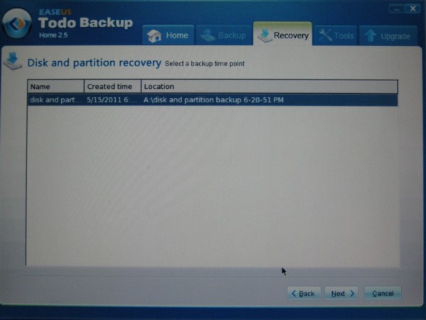 ●EASEUS Todo Backup Home 2.5(3)ハードディスクに保存したバックアップイメージからシステムを復元