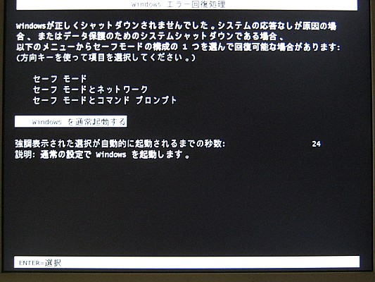 「Windows を通常起動する」が選択されていますから、このまま[Enter]キーを押します。