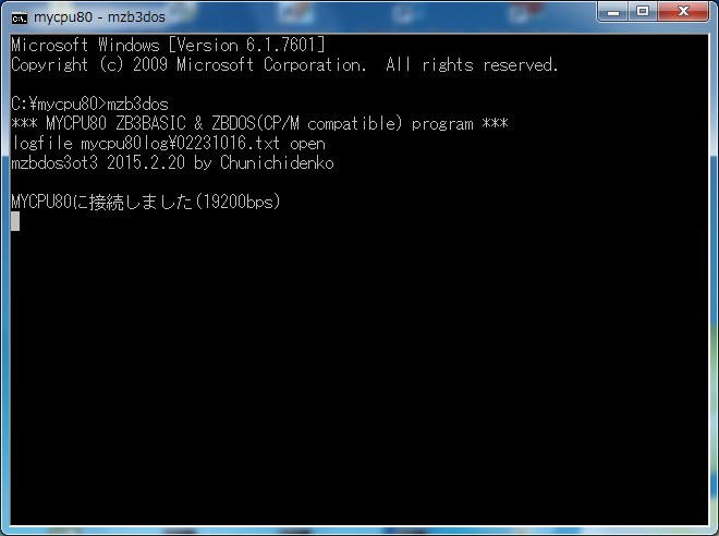 ZB3DOS(CP/M互換DOS)が起動しました。