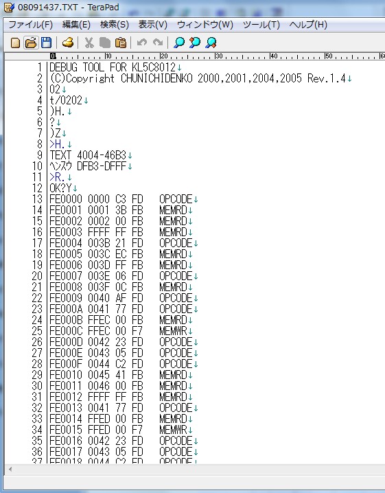 記録の先頭の第13行からここまで、ずっとMYCPU80の動作が正しいかどうかアドレスとコードを確認しながら追跡してきたのでありますよ。