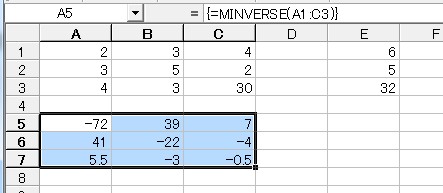 私は不勉強で全然知らなかったのですけれど、なんですか、EXCELには逆行列も、そしてそれを使って連立方程式を解く機能もあるのだそうですね。
