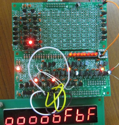 [HC373]のビット7のLEDが点灯し、ビット6のLEDが消灯しました。