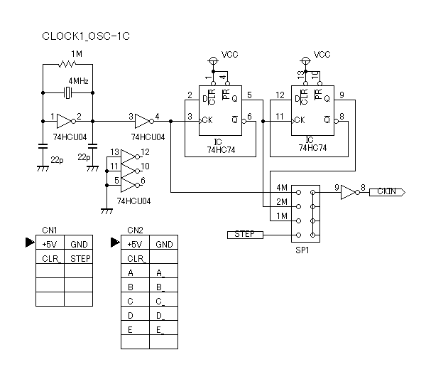 確かにCPUクロック回路の中心はバイナリカウンタ回路なのですが、CPUクロック発振回路はそのおおもとになるところですから、この辺りで書いておくことにします。