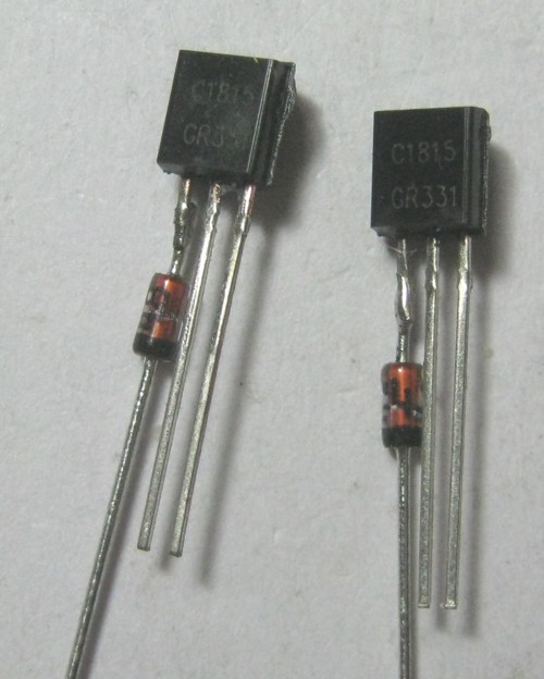 エミッタのリードを短く切ってそこにダイオードを取り付けています。