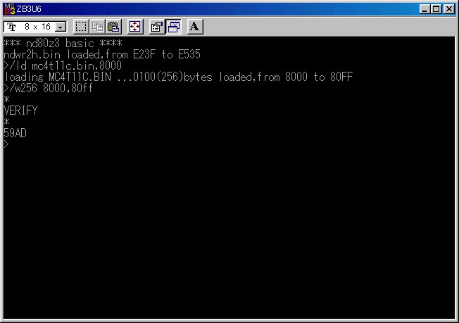 MC4T11C.BINをRAMにロードしてその範囲(8000〜80FF)を27C256に書き込みました。