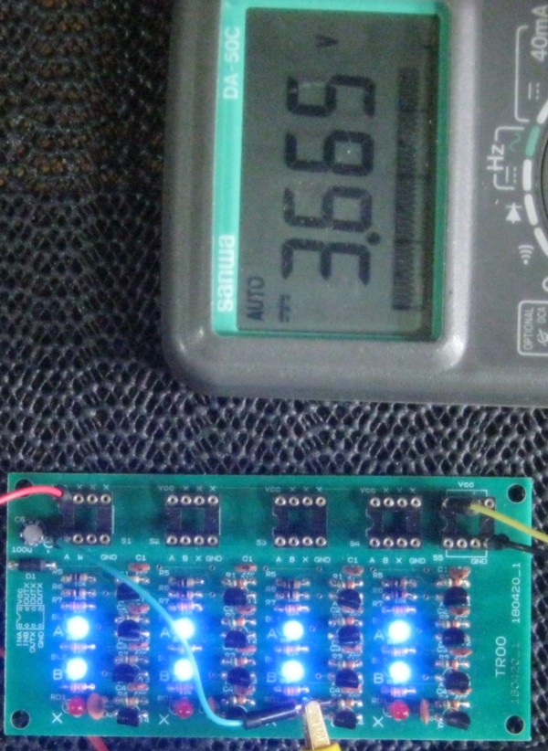 それを確かめるために今度は全部の入力をVccにつなぎました。
