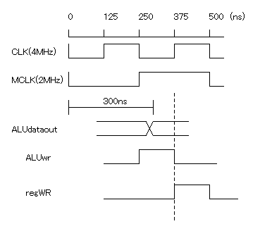 上のタイムチャートではregWRの後ろにまだCPUクロックの半クロック分の余裕があります。