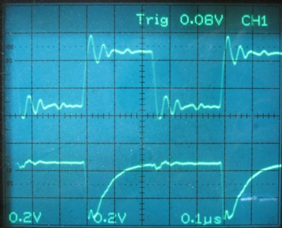 問題はトランジスタ出力の立ち上がり速度です。