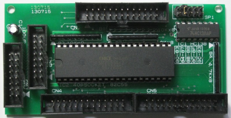 基板上部の26pinコネクタ(CN1)がI/O(82C55)の入出力用フラットケーブルコネクタです。