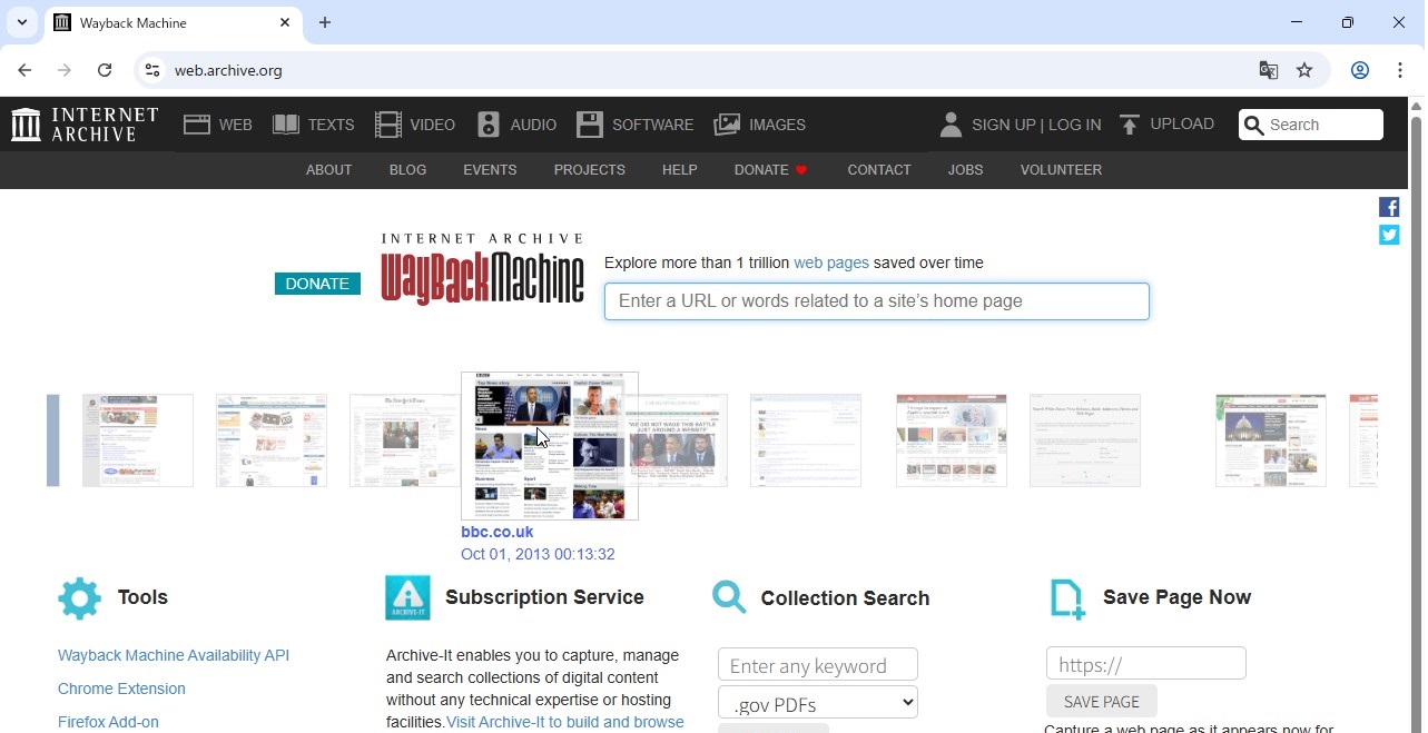 Gogleで「wayback machine」で検索するとヒットします。