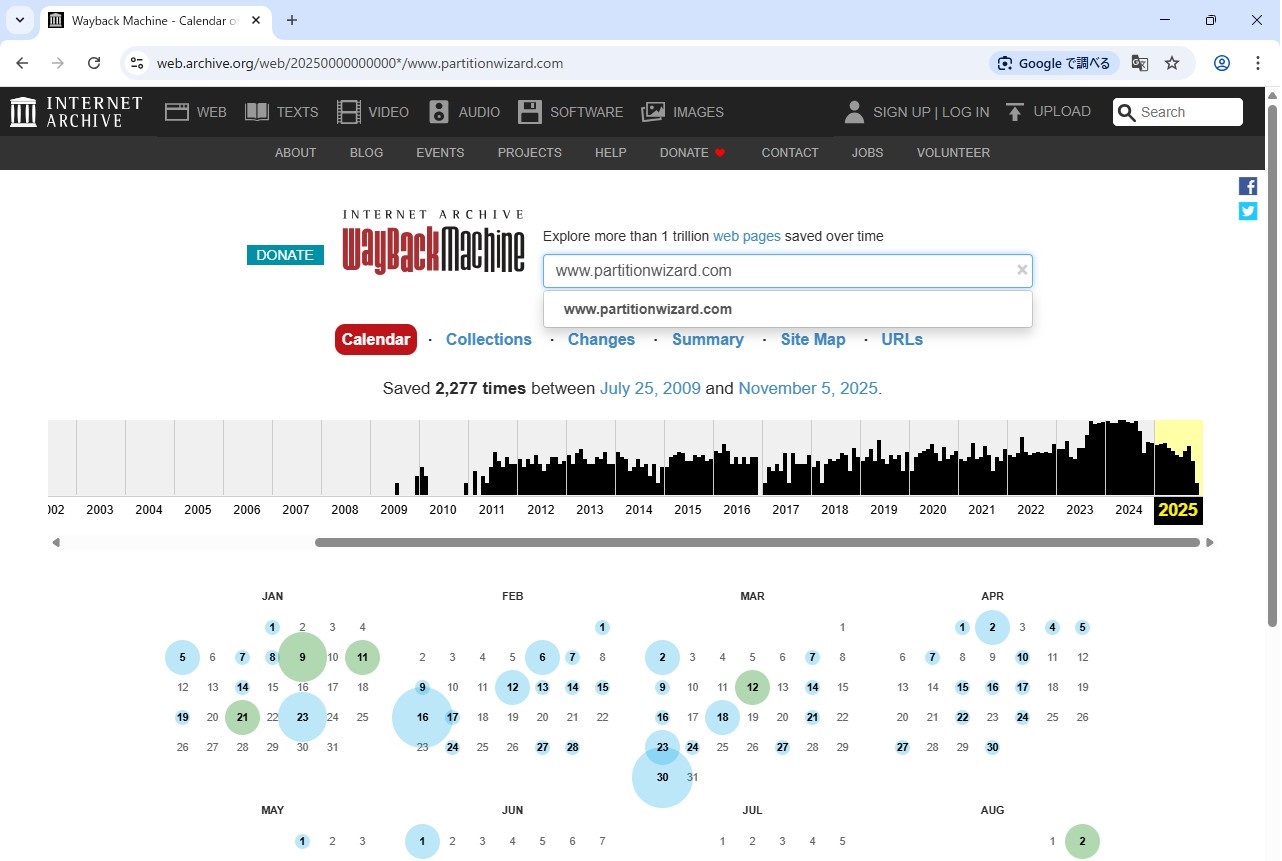 partitionwizard.comの過去サイトが表示されました。