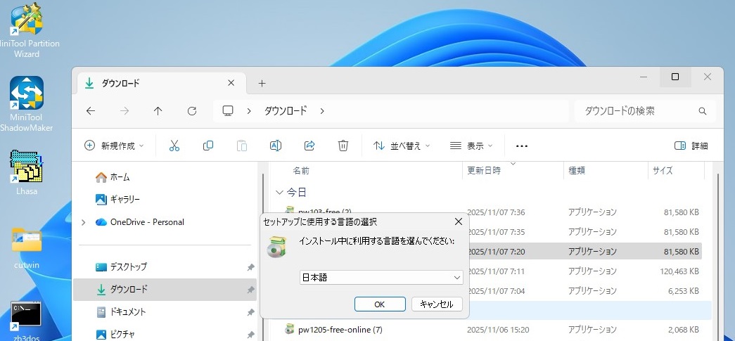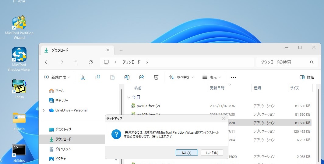 今回は前回ダウンロードしたpw103−freeを実行してPartition Wizard10.3をインストールします。