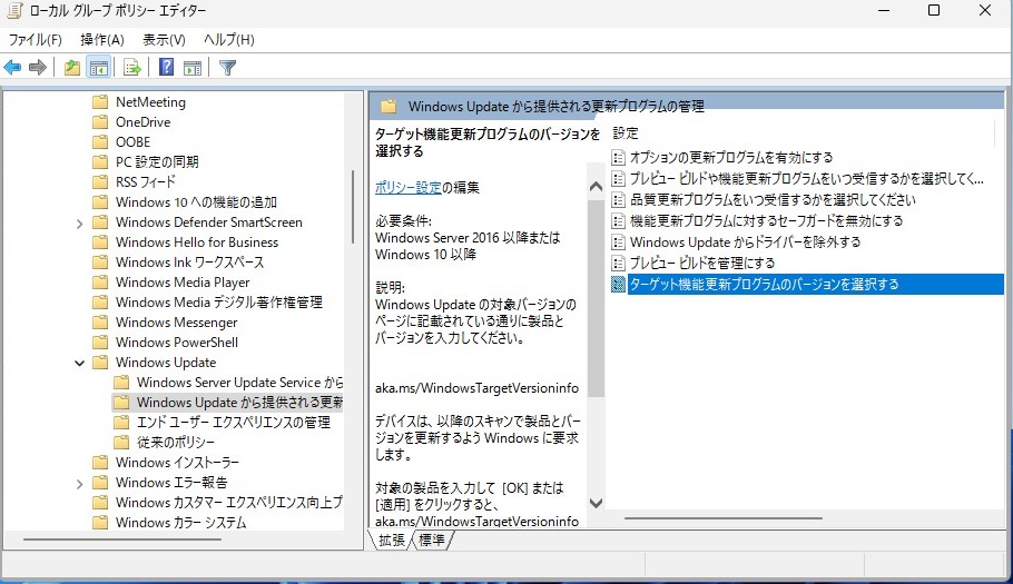 「ターゲット機能更新プログラムのバージョンを選択する」を右クリックして「編集」をクリックします。