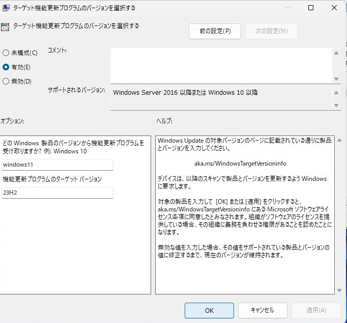 これでバージョンが「23H2」に固定されます。