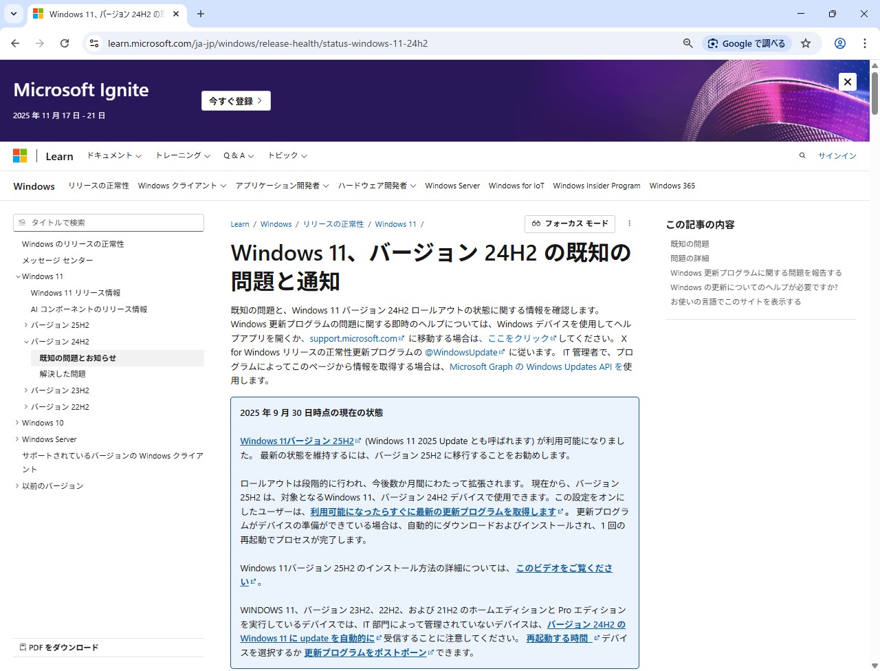 聞く所によりますとそもそもは24H2が余りにひどすぎるものだから一定数のユーザーが23H2にとどまっているというのが実情のようなのでありますね。