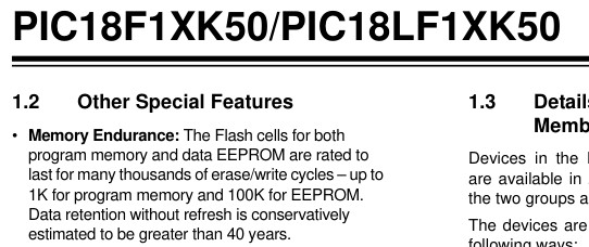 Program Memoryは1000回なのに対してEEPROMはなんと10万回です。