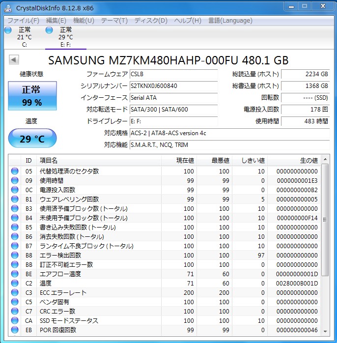 SSDはどうも胡散臭いにおいがすると思って使わなかったのですけれど今回Windows11やらLinuxやらの動作テストをするにあたって中古で手に入れたWindows11(3.5インチHDD内蔵)の余りの遅さに閉口してSSDに取り替えたところ起動が格段に速くなったことに幻惑されてつい我が愛機Windows7号もSSDに換装してしまったのでありました。
