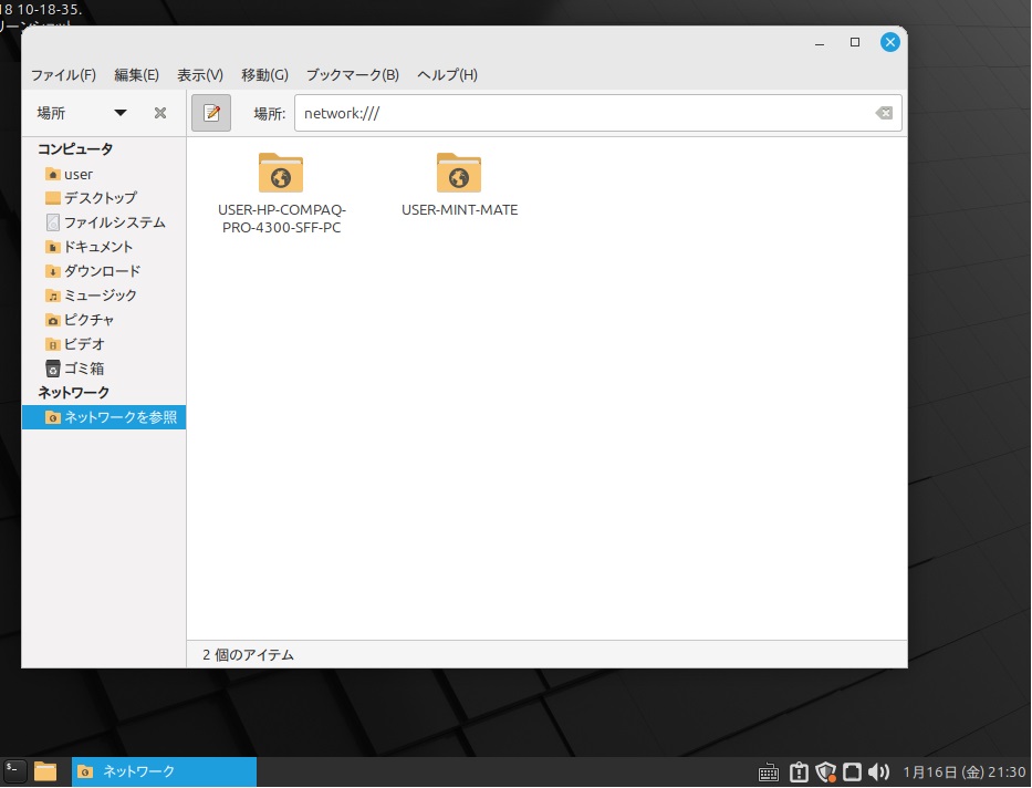 ところが昨年11月にあらためてハードディスク#210に同じようにインストールしたMint Mateでは前回の方法によれば共有フォルダを開くことができるのですがWindowsネットワークにUSER−MINT−MATEが表示されません。