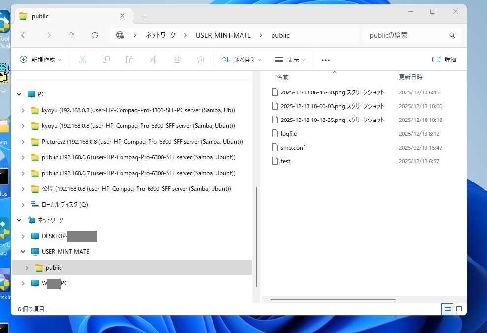 そういうことで納得していたのですがMint MateはWindowsネットワークにちゃんと表示されてその中の共有フォルダも開くことができます。