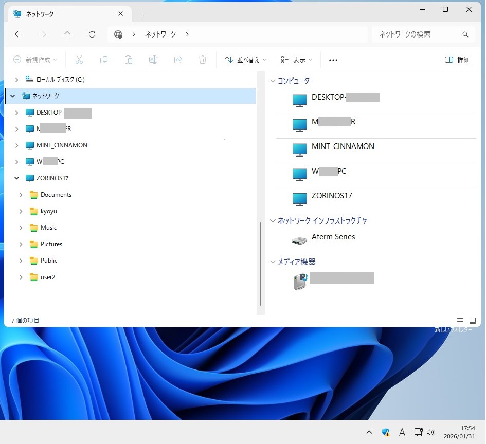 その間の経緯は冗長になりますから省略しますがどうやらWindowsネットワークにZORINOS17が表示されるまでにある程度の時間が必要だったようです。
