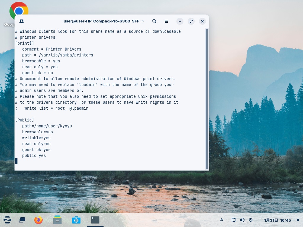 それが待ちきれなくてsmb.confに[Public]を追加したのですが結果としてZORINOS17ではそれは無用のことだったようです。